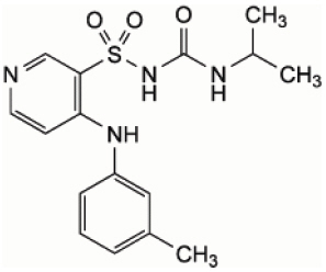 UpCard-CA1 (torsemide oral solution) is a loop diuretic of the pyridyl sulfonylurea class. Loop diuretics mainly inhibit the Na+/2Cl-/K+ carrier in the ascending limb of the loop of Henle. UpCard-CA1 is an oral solution of 0.2% w/v torsemide in an aqueous mixture containing tromethamine, hydroxyethyl cellulose, saccharin sodium, and propylene glycol.