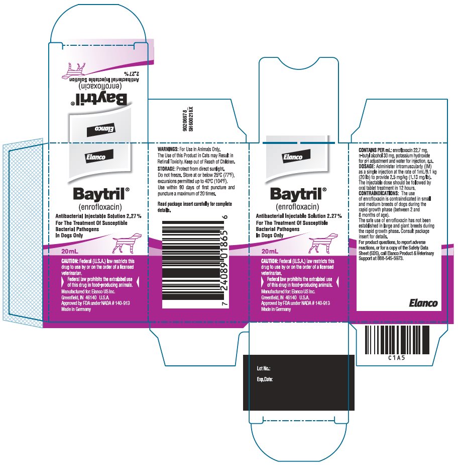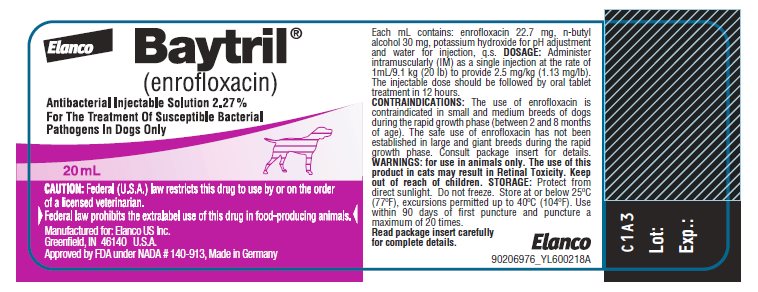 Baytril® (brand of enrofloxacin) Injectable Solution is indicated for the management of diseases in dogs associated with bacteria susceptible to enrofloxacin.