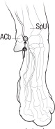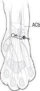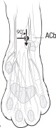 Needle advancement Drug injection point | Needle redirection to a 90˚ angle to the palmar plane | ACb - Accessory carpal bone | ||