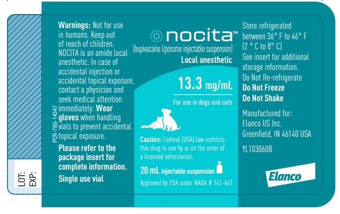 Do not mix NOCITA with other local anesthetics or other drugs prior to administration (see PRECAUTIONS).• Use a 25 gauge or larger bore needle for administration.• Administer by infiltration injection: Inject slowly into the tissues using an infiltration injection technique. To obtain adequate coverage, infiltrate all of the tissues in each surgical closure layer. Aspirate frequently to prevent intravascular administration (see CONTRAINDICATIONS).• Wear gloves when handling and administering NOCITA (see WARNINGS).• NOCITA should not be allowed to come into contact with topical antiseptics. When a topical antiseptic such as povidone iodine or chlorhexidine is applied, the area should be allowed to dry before NOCITA is administered.• Do not shake vial. Invert the vial multiple times to re-suspend the particles immediately prior to withdrawal of the product from the vial.• Do not puncture the vial multiple times. Puncture the vial stopper once with a single 25 gauge or larger needle. Use aseptic technique to sequentially attach and fill sterile syringes. Each syringe should be prepared for single patient use only. Discard the vial after all doses are withdrawn.• Following withdrawal from the vial into a syringe, NOCITA may be stored at controlled room temperature of 68° F to 77° F (20° C to 25° C) for up to 4 hours. Because the formulation does not contain preservative, the syringe(s) must be discarded after 4 hours.• Do not dilute NOCITA prior to use as a nerve block in cats.