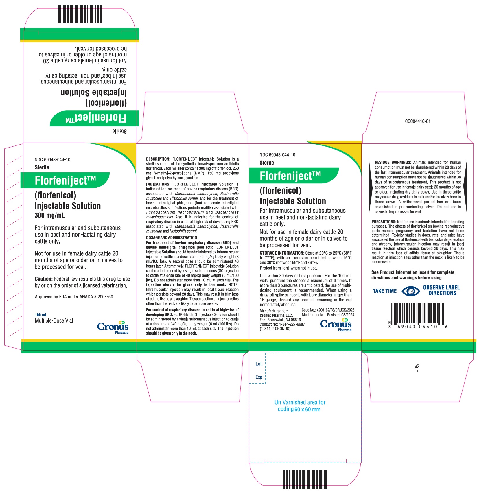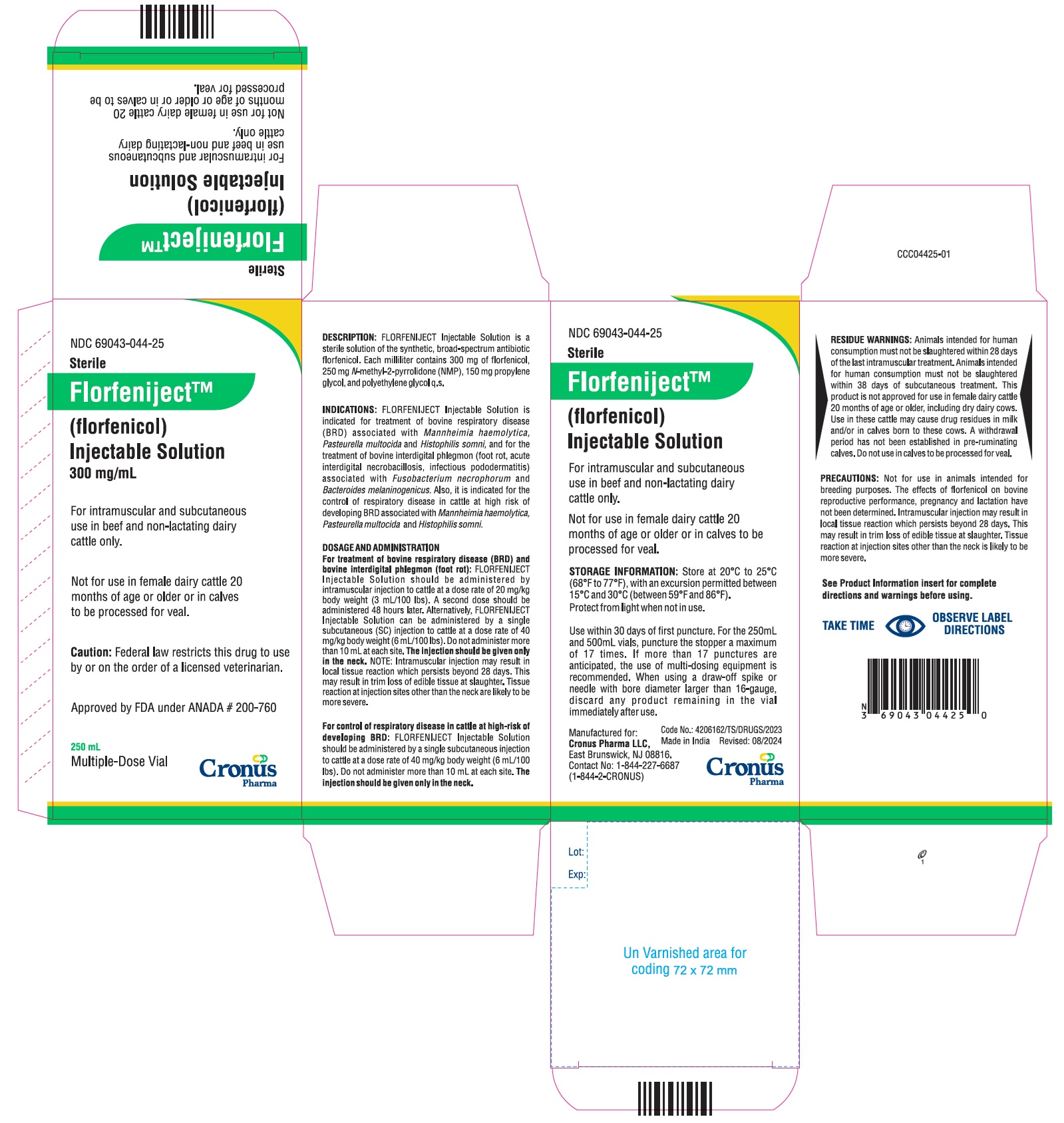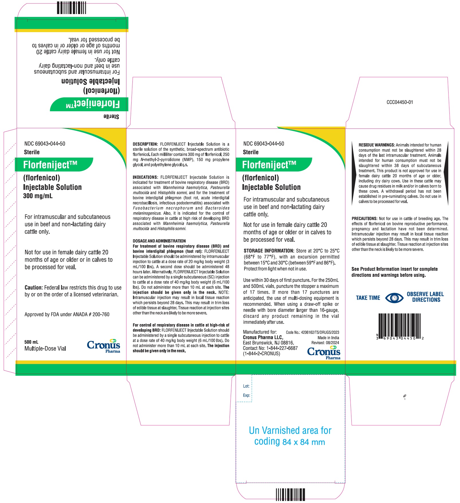 Animal NDC 69043-044-50 Florfeniject