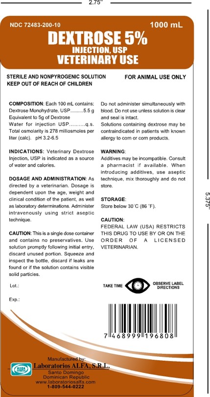 Animal NDC 72483-200-10 Alfa Veterinary 5% Dextrose