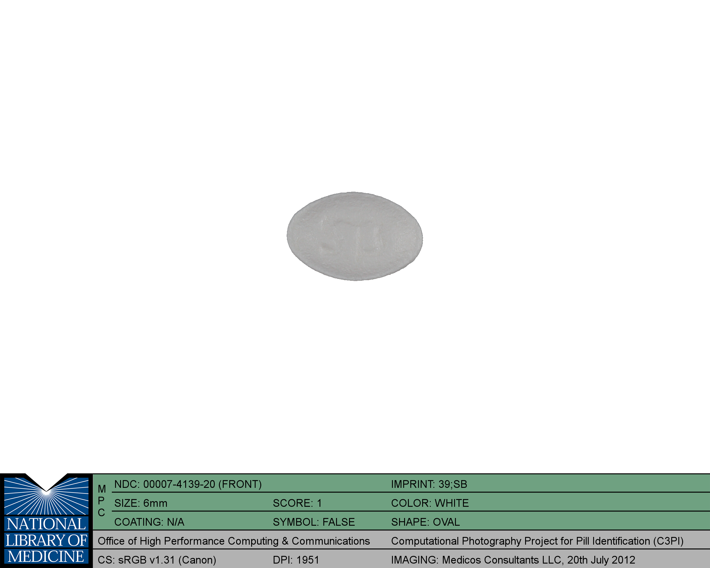 Coreg by Glaxosmithkline Llc is a white oval about 6 mm in size, imprinted with 39 and SB. The product is a with active ingredient(s) . The shape, size, imprinting and color are characteristics of an oral solid dosage form of a medicinal product.
