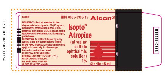 The following 5 images provide visual information about the product associated with Isopto Atropine NDC 0065-0303 by Alcon Laboratories, Inc., such as packaging, labeling, and the appearance of the drug itself. This resource could be helpful for medical professionals, pharmacists, and patients seeking to verify medication information and ensure they have the correct product.