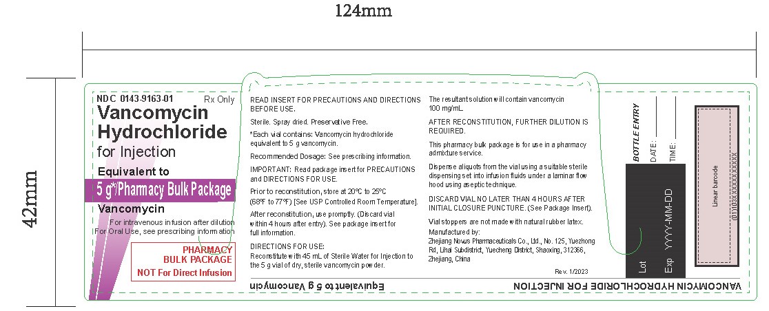 The following 5 images provide visual information about the product associated with Vancomycin Hydrochloride NDC 0143-9163 by Hikma Pharmaceuticals Usa Inc., such as packaging, labeling, and the appearance of the drug itself. This resource could be helpful for medical professionals, pharmacists, and patients seeking to verify medication information and ensure they have the correct product.