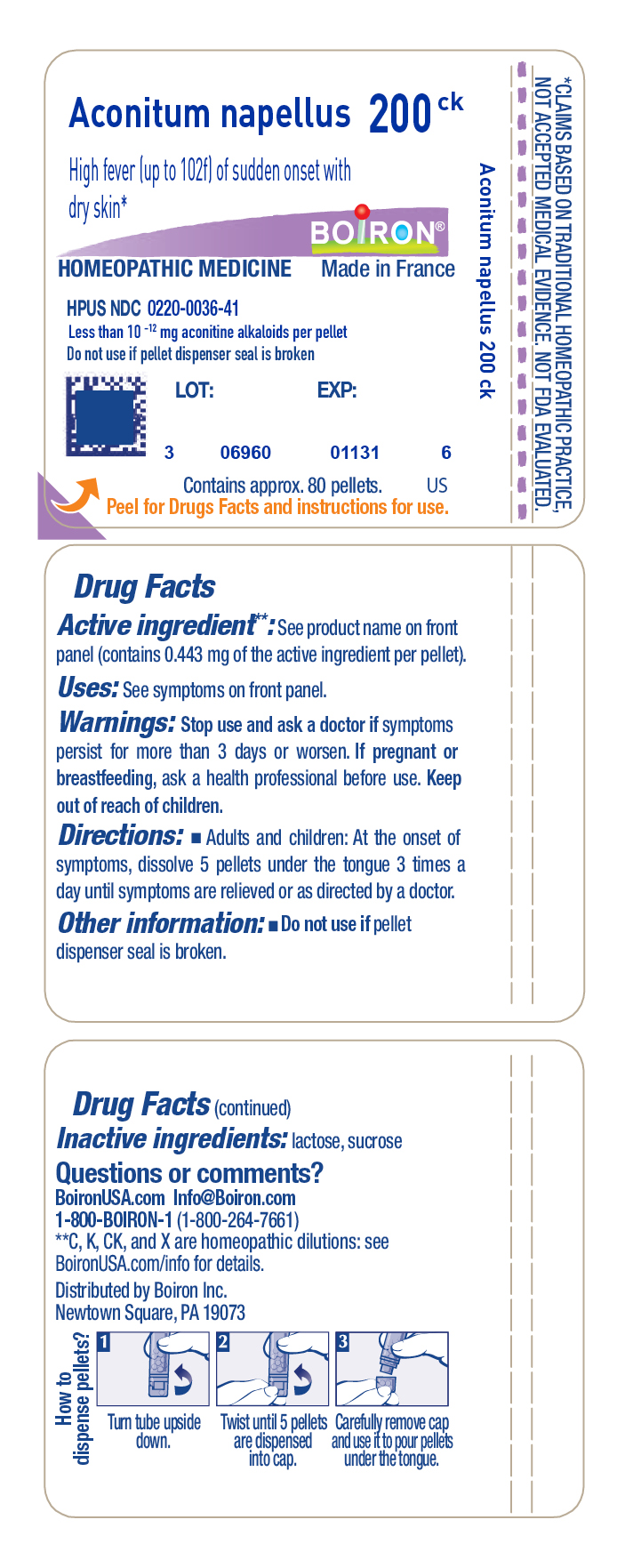 The following 2 images provide visual information about the product associated with Aconitum Napellus NDC 0220-0036 by Boiron, such as packaging, labeling, and the appearance of the drug itself. This resource could be helpful for medical professionals, pharmacists, and patients seeking to verify medication information and ensure they have the correct product.