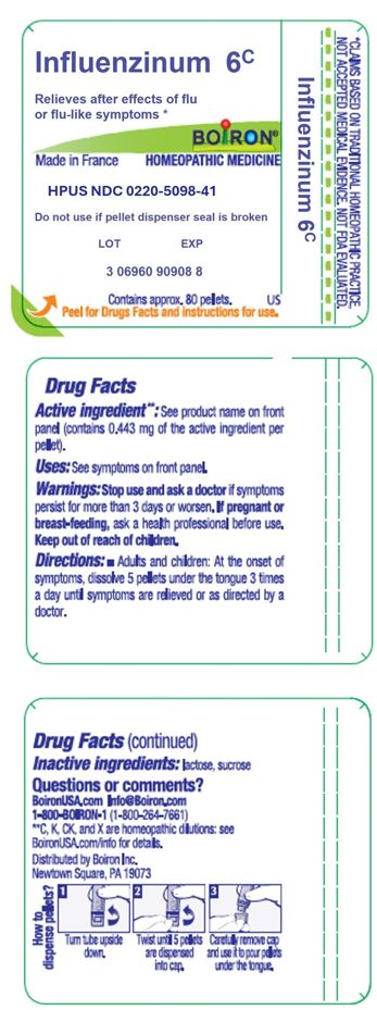 The following image provide visual information about the product associated with Influenzinum NDC 0220-5098 by Boiron, such as packaging, labeling, and the appearance of the drug itself. This resource could be helpful for medical professionals, pharmacists, and patients seeking to verify medication information and ensure they have the correct product.