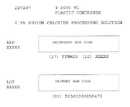 This appears to be a product label for a plastic container holding 43,000 milliliters (43 liters) of a solution containing 0.3% sodium chloride. The label also includes a secondary bar code and a code labeled "HHKKK". No other information is available from the provided text.*