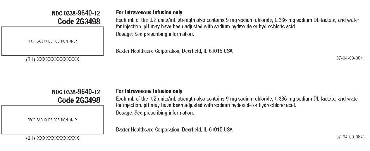 Store refrigerated (2°C to 8°C [36°F to 46°F]). This product contains 6 x 100 mL single-dose bags. Once taken out of the refrigerated condition, it should be used within 72 hours. Each bag contains 100 mL of the drug, which is in 0.9% Sodium Chloride Injection. The drug product must be stored in its light protective carton and protected from freezing. Do not add any supplemental medication or additives. The concentration of the drug is 40 units per 100 mL (0.4 units/mL). This product is intended for use by Baxter Rx only.*