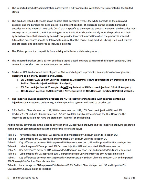 This text provides detailed information about the differences between imported medical products and their counterparts approved in the United States. It covers issues like barcode discrepancies, compatibility with other products, hydration forms, and labeling distinctions. It also highlights the importance of adjusting protocols and systems for accurate medication administration. Additionally, it emphasizes the need for prescription for certain products and mentions specific tables with key differences and label images for comparison. Overall, it offers essential insights for healthcare professionals dealing with imported medical products.*