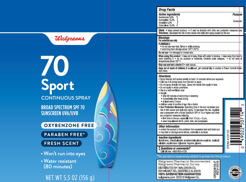 The following 3 images provide visual information about the product associated with Walgreens Spf 70 Sport Continuous NDC 0363-0035 by Walgreen Company, such as packaging, labeling, and the appearance of the drug itself. This resource could be helpful for medical professionals, pharmacists, and patients seeking to verify medication information and ensure they have the correct product.