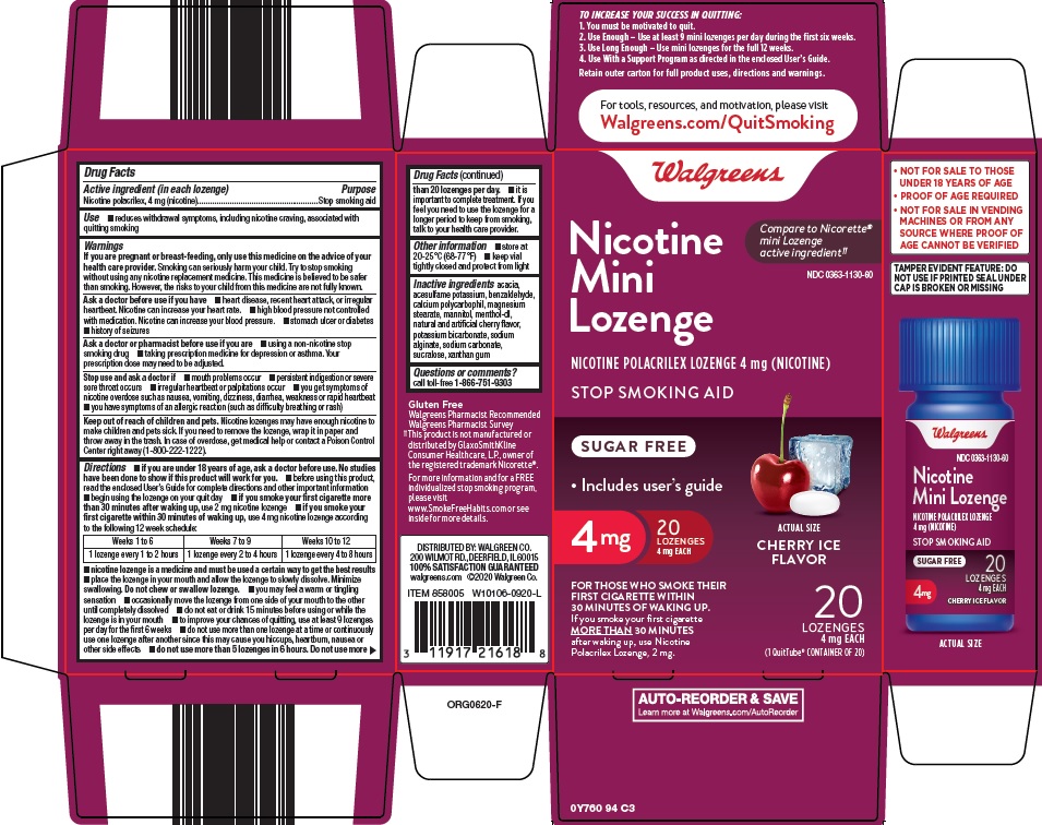 The following 6 images provide visual information about the product associated with Nicotine Mini NDC 0363-1130 by Walgreen Company, such as packaging, labeling, and the appearance of the drug itself. This resource could be helpful for medical professionals, pharmacists, and patients seeking to verify medication information and ensure they have the correct product.