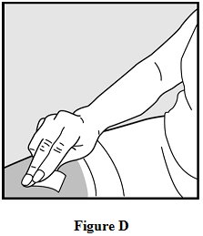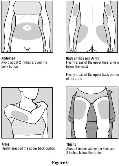 This is a set of instructions for body waxing, specifying areas to avoid on the abdomen, back of hips, and arms, as well as the thighs. It notes areas around the belly button and upper hips should be avoided, as well as areas of fleshy skin on the back of the arms and the upper thighs. It provides a visual guide with a labeled Figure C.*