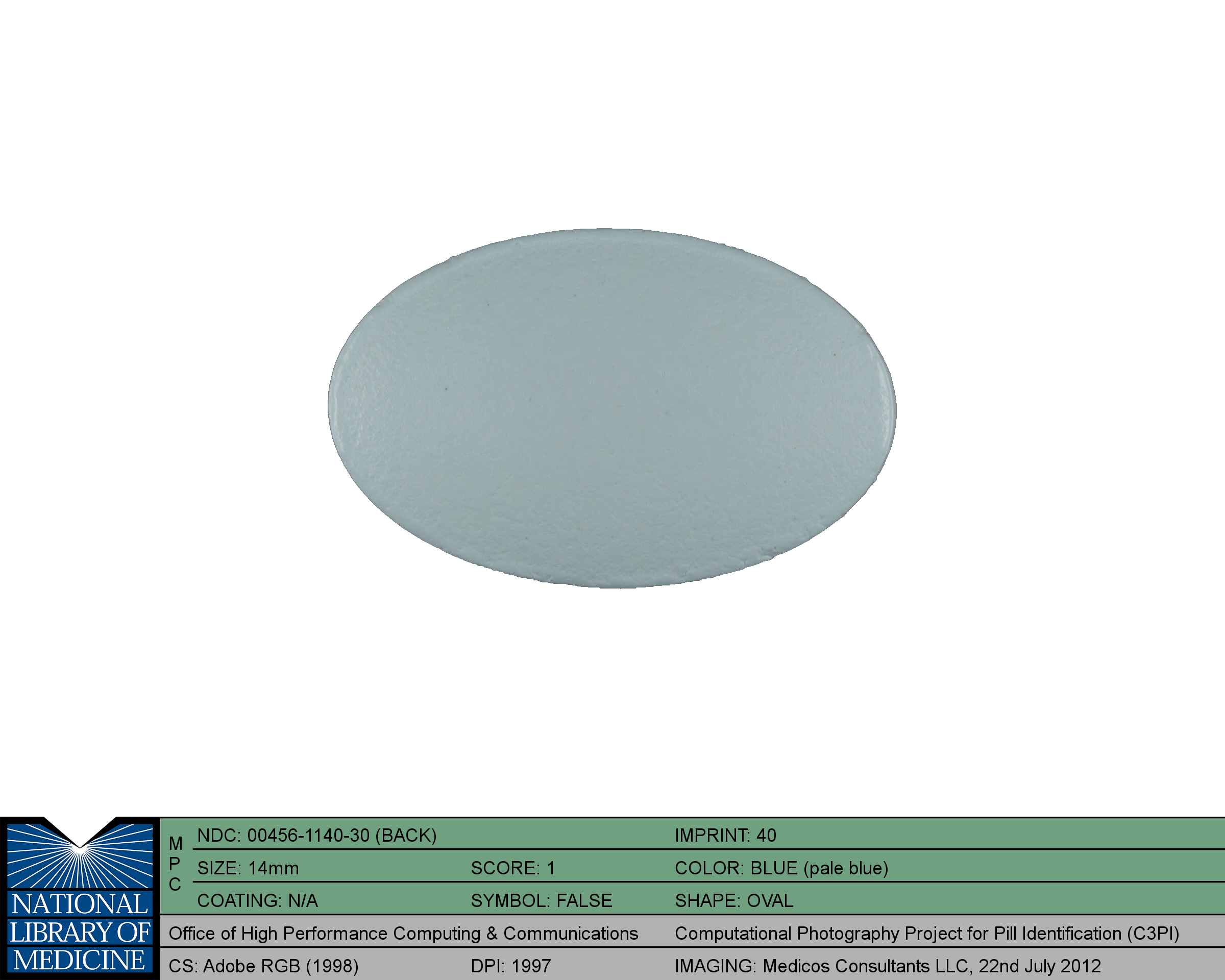 Viibryd by Allergan, Inc. is a blue oval tablet about 14 mm in size, imprinted with 40. The product is a human prescription drug with active ingredient(s) vilazodone hydrochloride. The shape, size, imprinting and color are characteristics of an oral solid dosage form of a medicinal product.