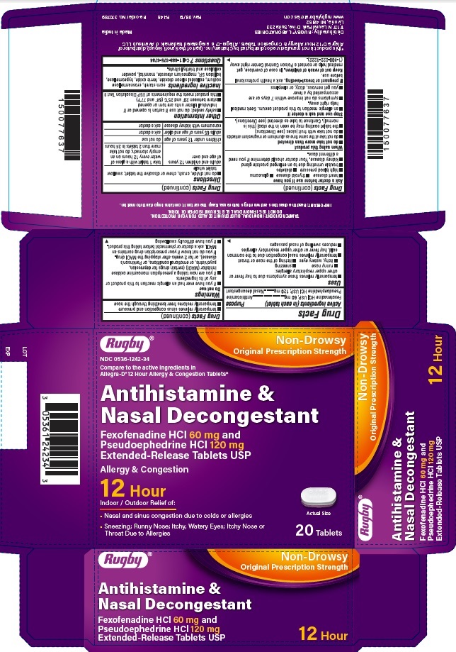 The following image provide visual information about the product associated with Fexofenadine Hcl And Pseudoephedrine Hci NDC 0536-1242 by Rugby Laboratories, such as packaging, labeling, and the appearance of the drug itself. This resource could be helpful for medical professionals, pharmacists, and patients seeking to verify medication information and ensure they have the correct product.