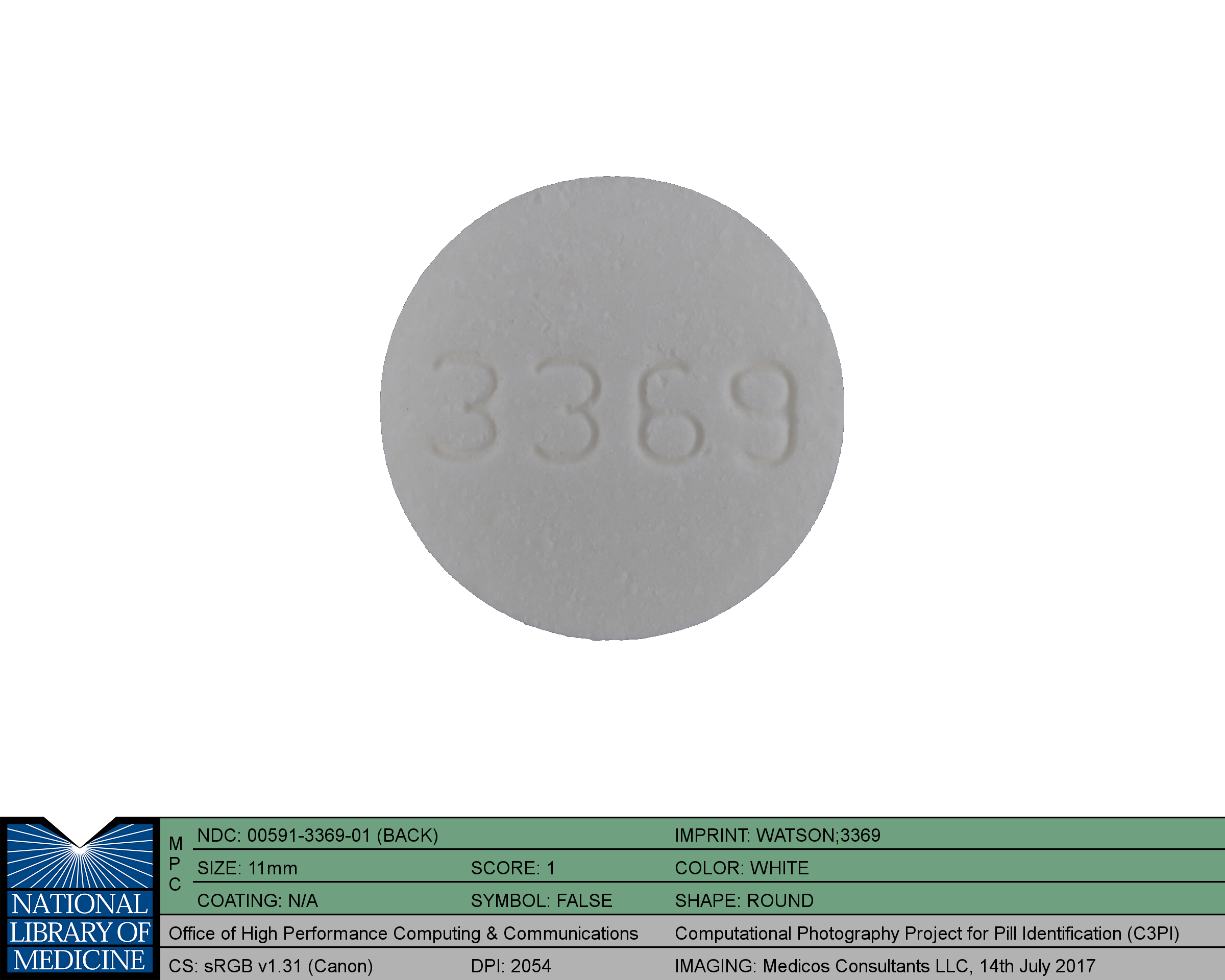 Butalbital, Acetaminophen, And Caffeine by Actavis Pharma, Inc. is a white round tablet about 11 mm in size, imprinted with WATSON and 3369. The product is a human prescription drug with active ingredient(s) butalbital, acetaminophen, and caffeine. The shape, size, imprinting and color are characteristics of an oral solid dosage form of a medicinal product.