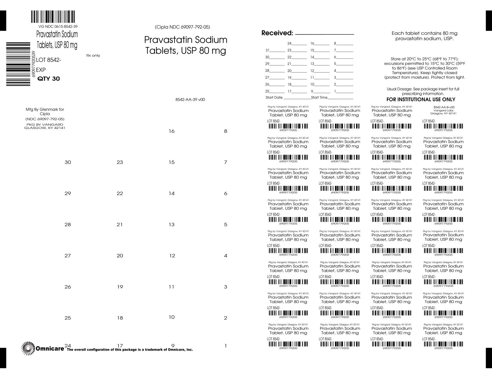 The text provided contains information about Pravastatin Sodium tablets in 80mg strength. It includes details such as manufacturing companies (Cipla and Glenmark), lot numbers, storage instructions, and the fact that it is for institutional use only. Please note that the actual content or dosage information is not clearly available due to the formatting of the text.*