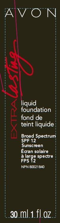 The following 3 images provide visual information about the product associated with Extralasting Liquid Foundation NDC 10096-0232 by New Avon Llc, such as packaging, labeling, and the appearance of the drug itself. This resource could be helpful for medical professionals, pharmacists, and patients seeking to verify medication information and ensure they have the correct product.