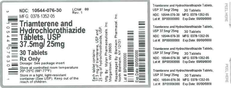 The following 3 images provide visual information about the product associated with Triamterene And Hydrochlorothiazide NDC 10544-076 by Blenheim Pharmacal, Inc., such as packaging, labeling, and the appearance of the drug itself. This resource could be helpful for medical professionals, pharmacists, and patients seeking to verify medication information and ensure they have the correct product.