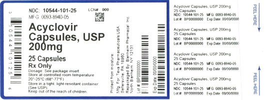 The following 2 images provide visual information about the product associated with Acyclovir NDC 10544-101 by Blenheim Pharmacal, Inc., such as packaging, labeling, and the appearance of the drug itself. This resource could be helpful for medical professionals, pharmacists, and patients seeking to verify medication information and ensure they have the correct product.