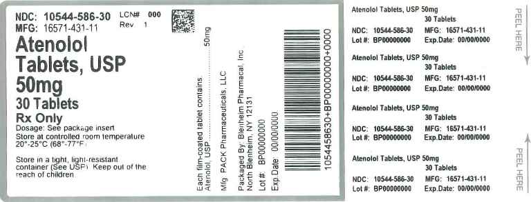 The following 3 images provide visual information about the product associated with Atenolol NDC 10544-586 by Blenheim Pharmacal, Inc., such as packaging, labeling, and the appearance of the drug itself. This resource could be helpful for medical professionals, pharmacists, and patients seeking to verify medication information and ensure they have the correct product.