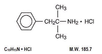 Phentermine Hydrochloride USP has the chemical name of α, α -Dimethylphenethylamine hydrochloride. The structural formula is as follows: