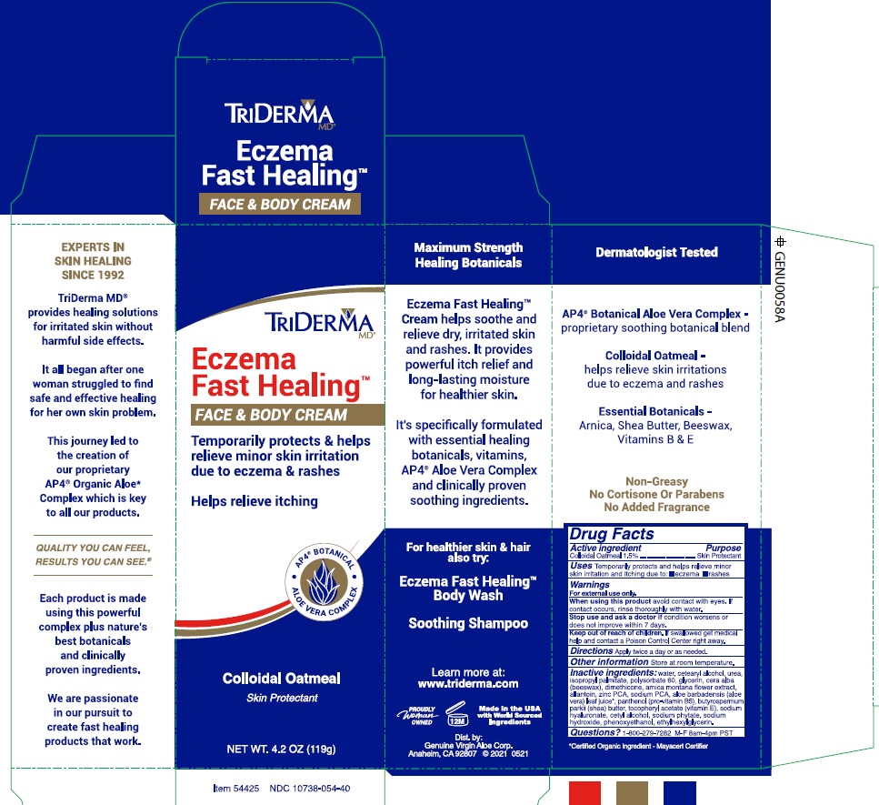 The following 3 images provide visual information about the product associated with Triderma Eczema Fast Healing Face And Body NDC 10738-054 by Genuine Virgin Aloe Corporation, such as packaging, labeling, and the appearance of the drug itself. This resource could be helpful for medical professionals, pharmacists, and patients seeking to verify medication information and ensure they have the correct product.