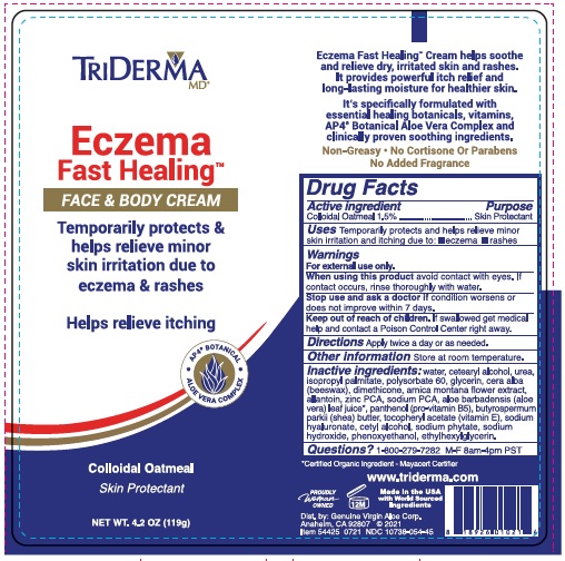 TriDerma Eczema Fast Healing cream is designed to temporarily protect and relieve minor skin irritation due to eczema and rashes. It helps relieve itching by using Colloidal Oatmeal Skin Protectant. This cream is formulated with natural botanicals and vitamins, and the AP4* Botanical Aloe Vera Complex and other soothing ingredients, which provides healthy and long-lasting moisture. This non-greasy cream has no Cortisone or Parabens and does not have any added fragrance. This cream is useful to treat eczema and rashes, and it should be applied to the affected areas after cleaning with water. For additional information, contact the manufacturer's customer care department at 1-800-270-7262.*