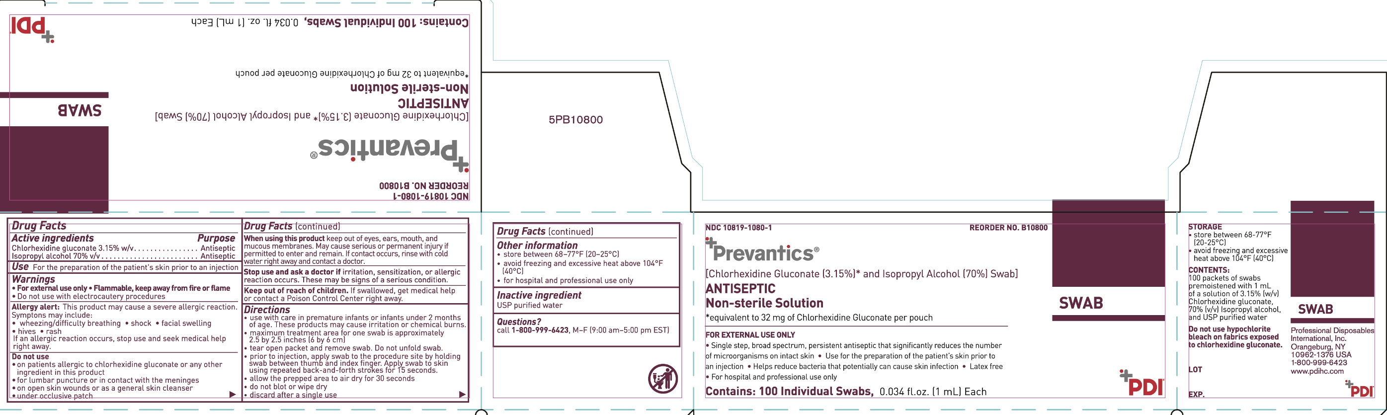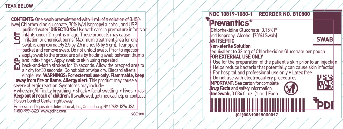 The following 2 images provide visual information about the product associated with Prevantics Swab NDC 10819-1080 by Professional Disposables International, Inc., such as packaging, labeling, and the appearance of the drug itself. This resource could be helpful for medical professionals, pharmacists, and patients seeking to verify medication information and ensure they have the correct product.