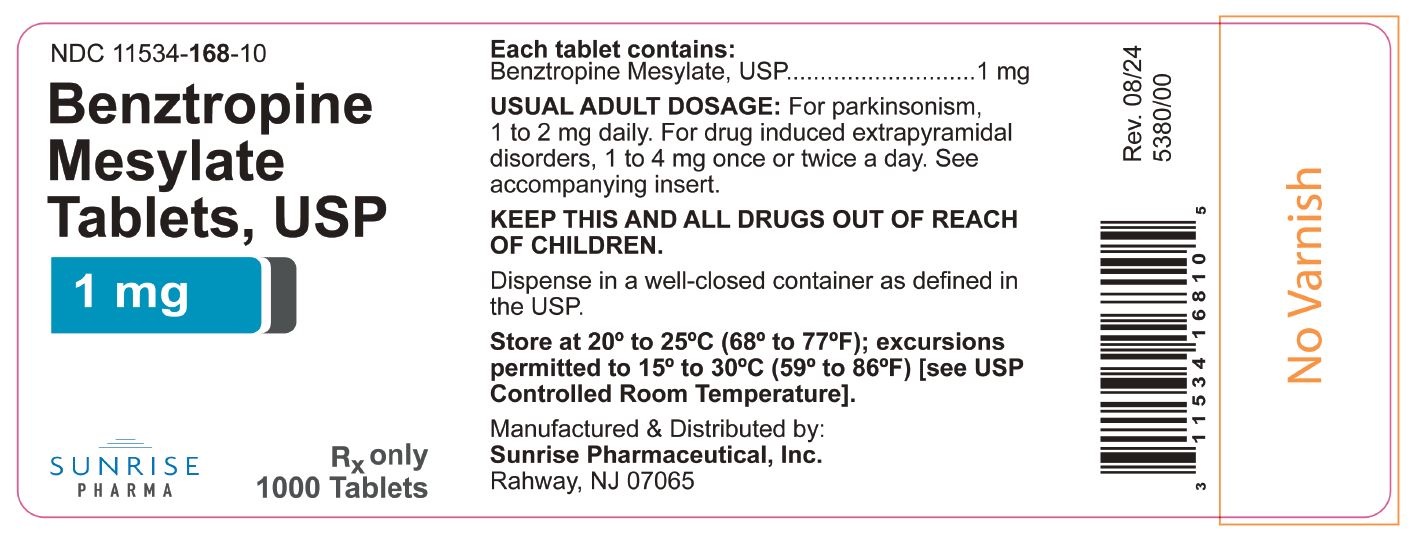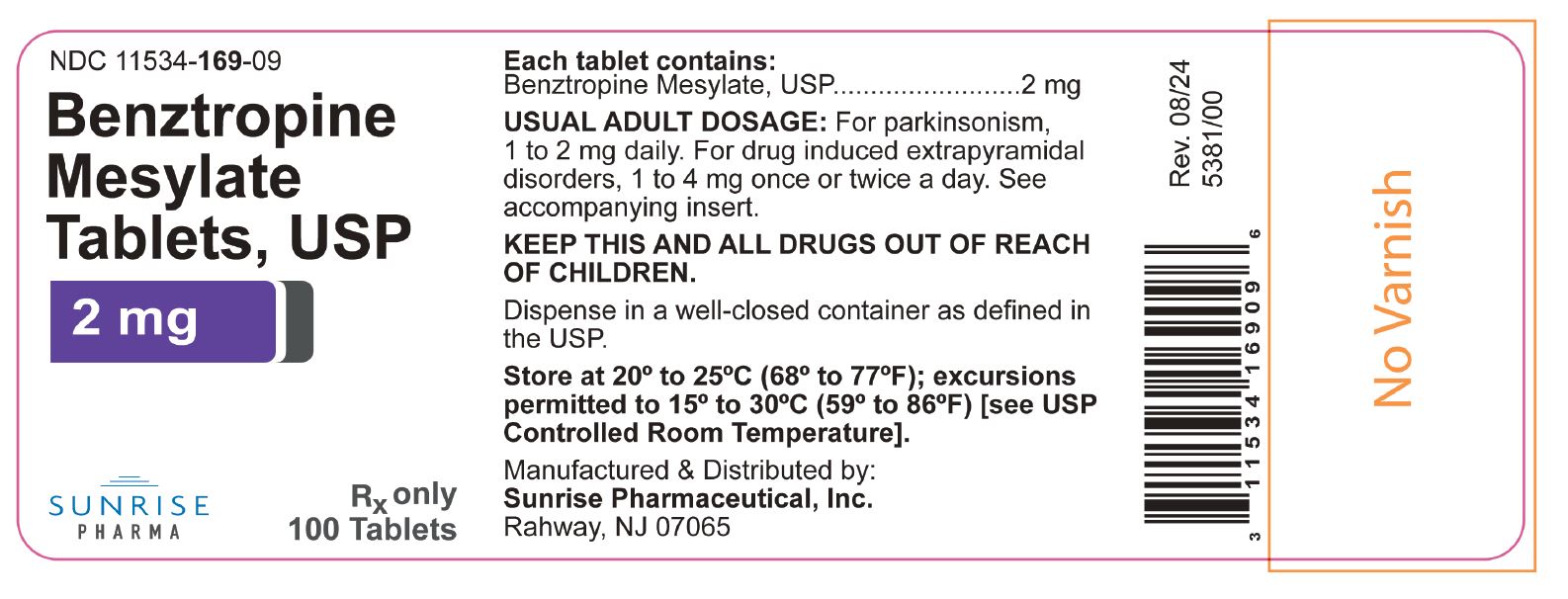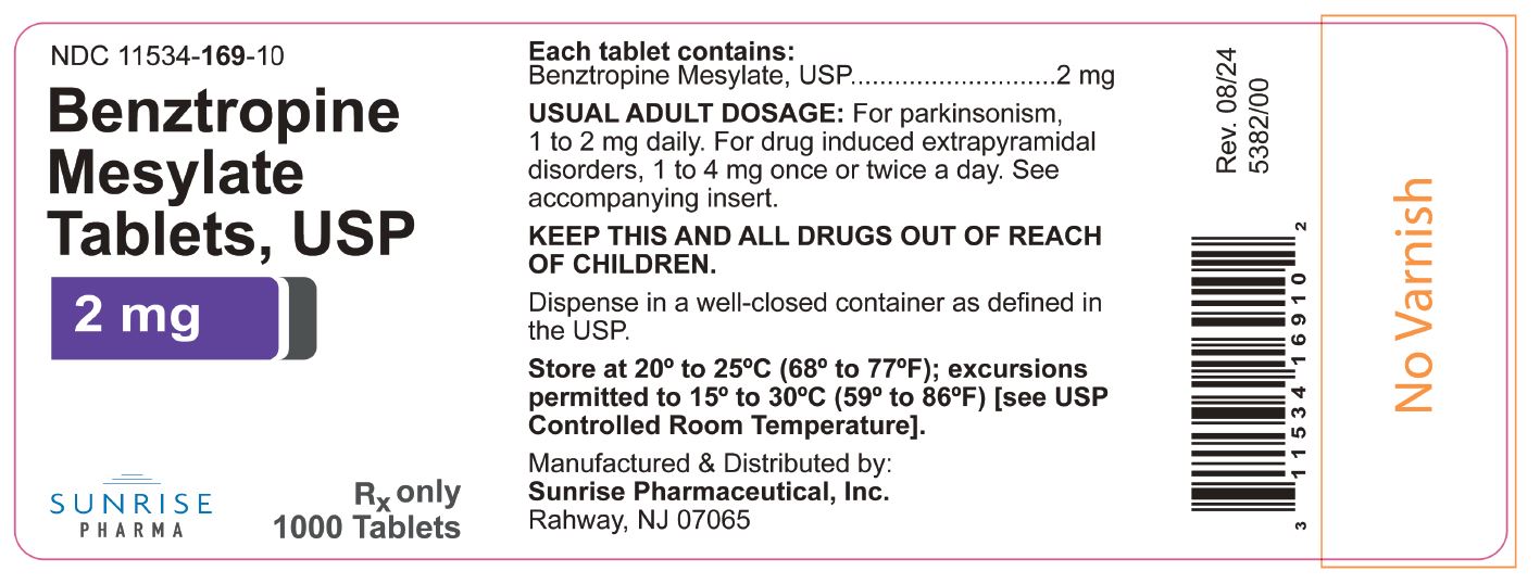 The following 7 images provide visual information about the product associated with Benztropine Mesylate NDC 11534-169 by Sunrise Pharmaceutical, Inc, such as packaging, labeling, and the appearance of the drug itself. This resource could be helpful for medical professionals, pharmacists, and patients seeking to verify medication information and ensure they have the correct product.