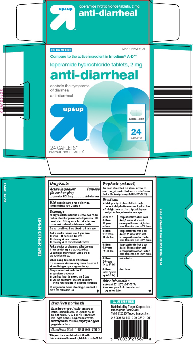 The following image provide visual information about the product associated with Up And Up Anti Diarrheal NDC 11673-224 by Target Corporation, such as packaging, labeling, and the appearance of the drug itself. This resource could be helpful for medical professionals, pharmacists, and patients seeking to verify medication information and ensure they have the correct product.
