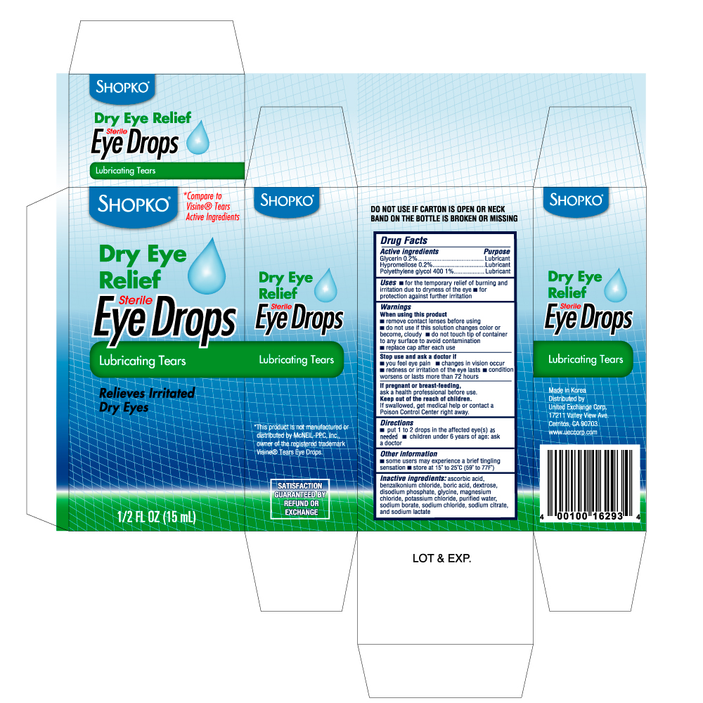 The following image provide visual information about the product associated with Shopko Dry Eye Relief NDC 11716-1629 by Hanlim Pharm. Co., Ltd., such as packaging, labeling, and the appearance of the drug itself. This resource could be helpful for medical professionals, pharmacists, and patients seeking to verify medication information and ensure they have the correct product.
