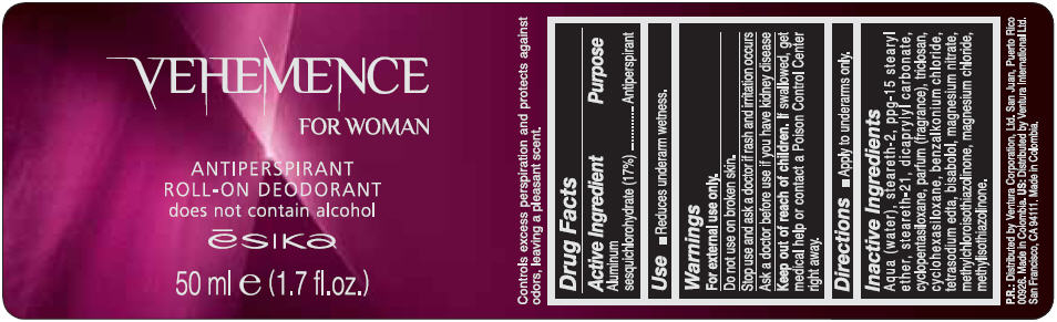 Esika Vehemence For Woman Roll-on Product Label