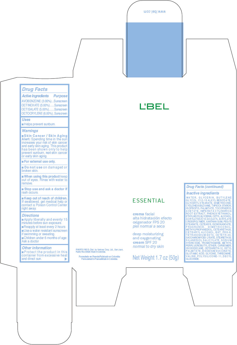 FDA Label for Lbel Essential Moisturizing And Oxygenating Spf 20 Normal To Dry Skin