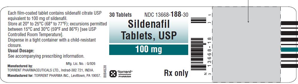 This is a description of a medication named sidenafi citrate. Each film-coated tablet contains 100 mg of sidenafl. The tablets are to be stored in a tight container with a child-resistant closure at a temperature between 20° to 25°C (68° to 77°F). The usual dosage is 100 {11]1). The medication is manufactured in India by TORRENT PHARMACEUTICALS LTD. and distributed by TORRENT PHARMA INC. in Levitiown, PA 19057. More information about the medication can be found in the accompanying prescribing information.*