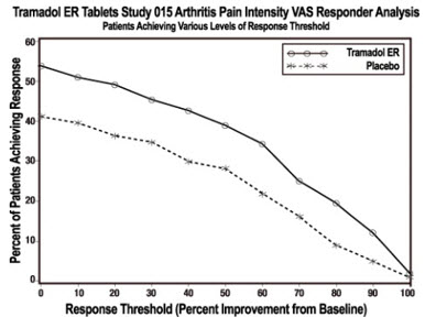The text seems to be a report on a study called "Tramadol ER Tablets Study 015" that evaluated the effectiveness of the tablets in treating arthritis pain. The report includes an analysis of pain intensity using the VAS (Visual Analog Scale) and a responder analysis. However, it is not possible to understand the results of the analysis as the rest of the text is gibberish.*