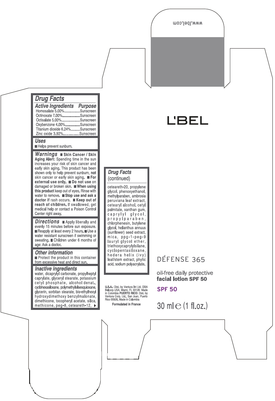 Lbel Defense 365 Oil-free Daily Protective Facial Spf 50 Product Label