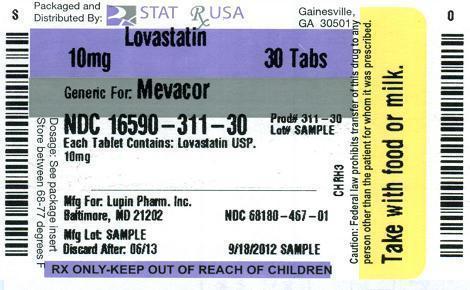 The following 3 images provide visual information about the product associated with Lovastatin NDC 16590-311 by Stat Rx Usa Llc, such as packaging, labeling, and the appearance of the drug itself. This resource could be helpful for medical professionals, pharmacists, and patients seeking to verify medication information and ensure they have the correct product.
