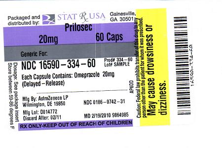 The following 3 images provide visual information about the product associated with Prilosec NDC 16590-334 by Stat Rx Usa Llc, such as packaging, labeling, and the appearance of the drug itself. This resource could be helpful for medical professionals, pharmacists, and patients seeking to verify medication information and ensure they have the correct product.