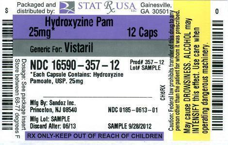 The following 2 images provide visual information about the product associated with Hydroxyzine Pamoate NDC 16590-357 by Stat Rx Usa Llc, such as packaging, labeling, and the appearance of the drug itself. This resource could be helpful for medical professionals, pharmacists, and patients seeking to verify medication information and ensure they have the correct product.