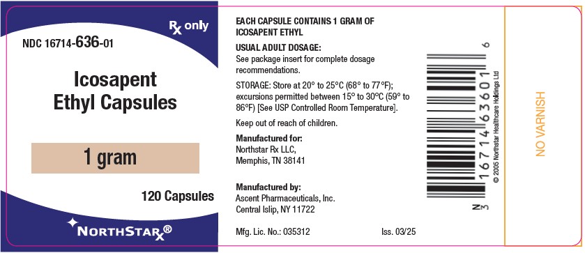 The following 3 images provide visual information about the product associated with Icosapent Ethyl NDC 16714-636 by Northstar Rx Llc, such as packaging, labeling, and the appearance of the drug itself. This resource could be helpful for medical professionals, pharmacists, and patients seeking to verify medication information and ensure they have the correct product.