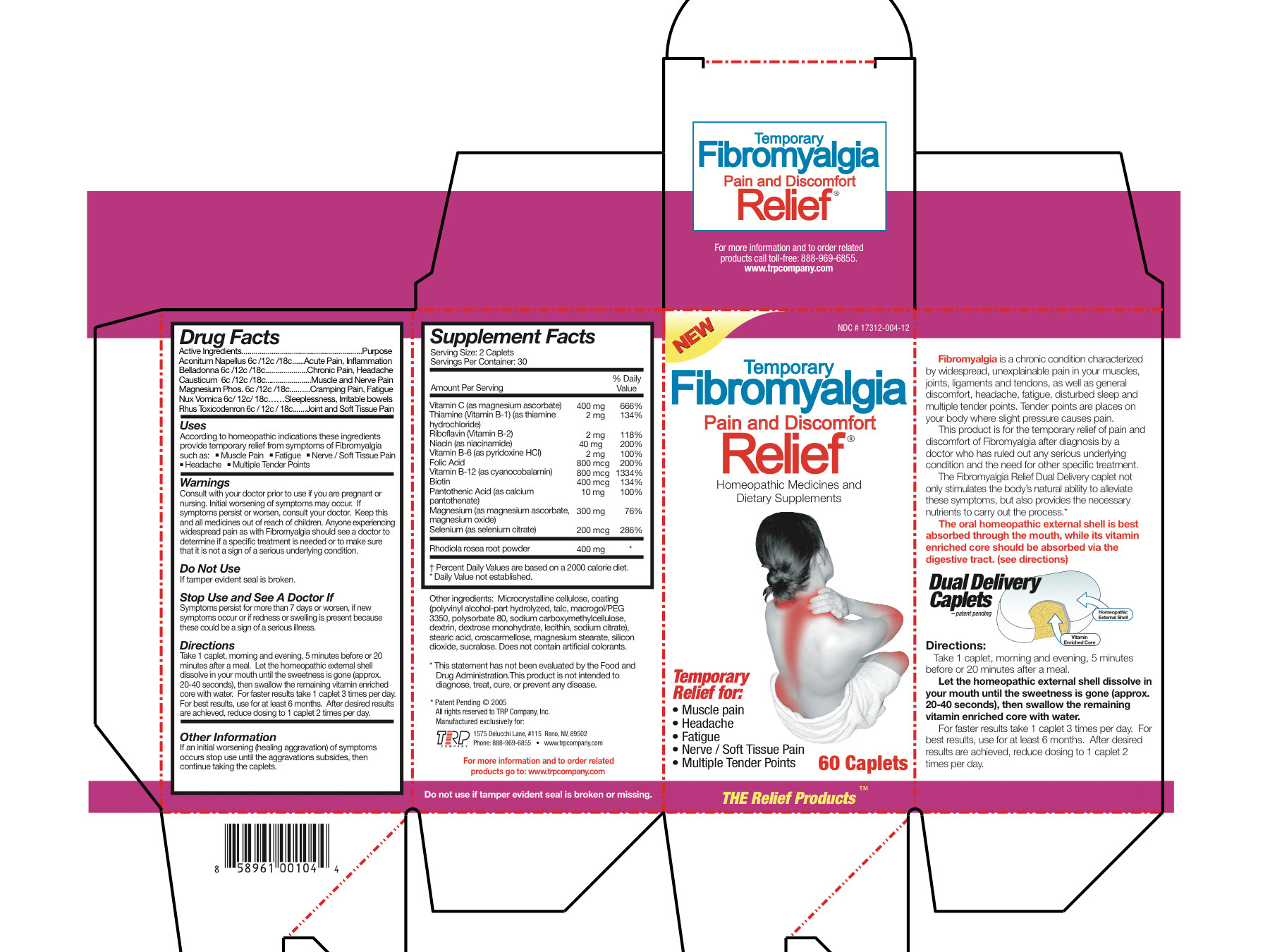 The following 2 images provide visual information about the product associated with Temporary Fibromyalgia Pain And Discomfort Relief NDC 17312-004 by Trp Company, such as packaging, labeling, and the appearance of the drug itself. This resource could be helpful for medical professionals, pharmacists, and patients seeking to verify medication information and ensure they have the correct product.