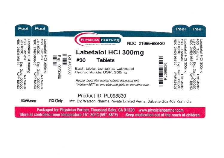 The following 3 images provide visual information about the product associated with Labetalol Hydrochloride NDC 21695-988 by Rebel Distributors Corp, such as packaging, labeling, and the appearance of the drug itself. This resource could be helpful for medical professionals, pharmacists, and patients seeking to verify medication information and ensure they have the correct product.