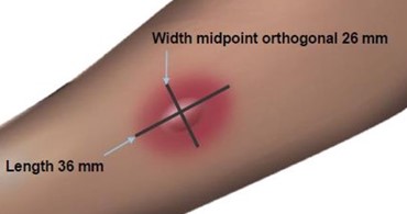 This text describes the two parts of a wheal reaction - the wheal and the flare. A wheal is a smooth and slightly raised area that is either redder or paler than the surrounding skin. The flare is the outermost red zone of the wheal reaction.*