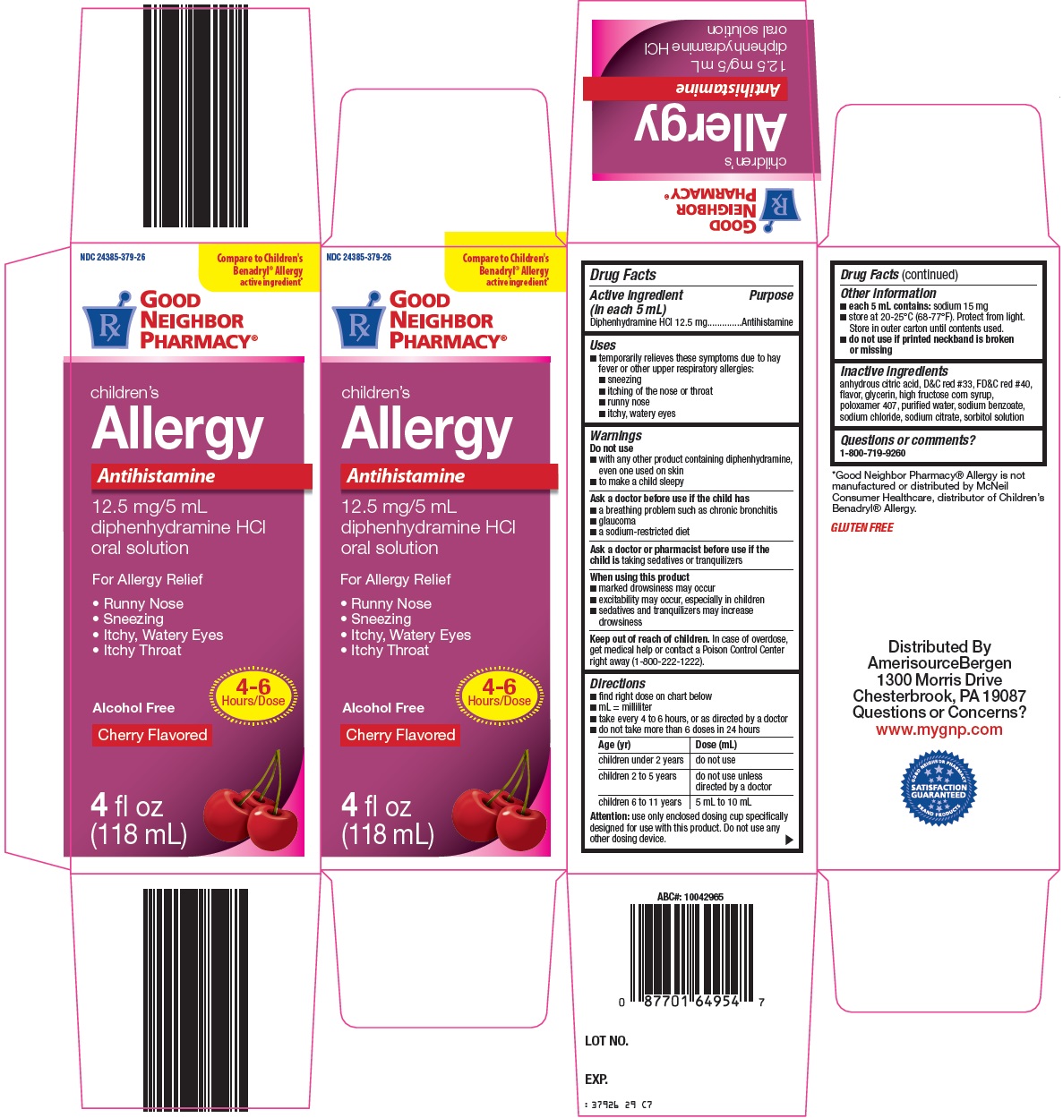 The following image provide visual information about the product associated with Good Neighbor Pharmacy Childrens Allergy NDC 24385-379 by Amerisource Bergen, such as packaging, labeling, and the appearance of the drug itself. This resource could be helpful for medical professionals, pharmacists, and patients seeking to verify medication information and ensure they have the correct product.
