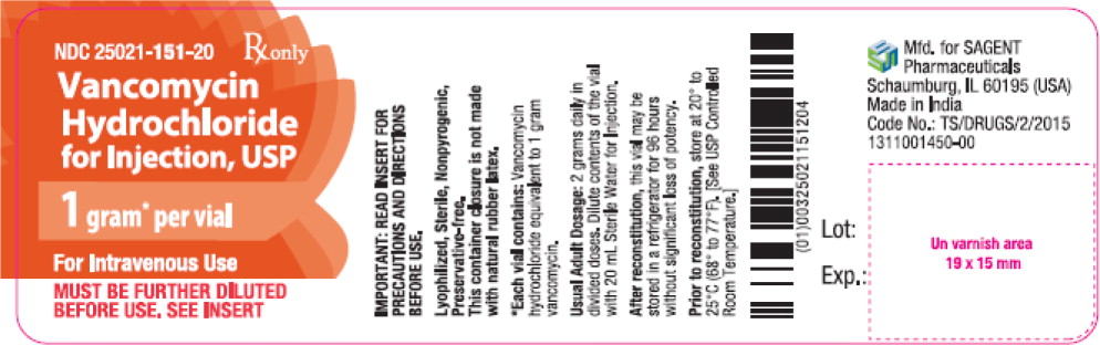 The following 3 images provide visual information about the product associated with Vancomycin Hydrochloride NDC 25021-151 by Sagent Pharmaceuticals, such as packaging, labeling, and the appearance of the drug itself. This resource could be helpful for medical professionals, pharmacists, and patients seeking to verify medication information and ensure they have the correct product.