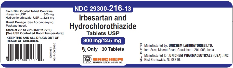 The following 11 images provide visual information about the product associated with Irbesartan And Hydrochlorothiazide NDC 29300-216 by Unichem Pharmaceuticals (usa), Inc., such as packaging, labeling, and the appearance of the drug itself. This resource could be helpful for medical professionals, pharmacists, and patients seeking to verify medication information and ensure they have the correct product.