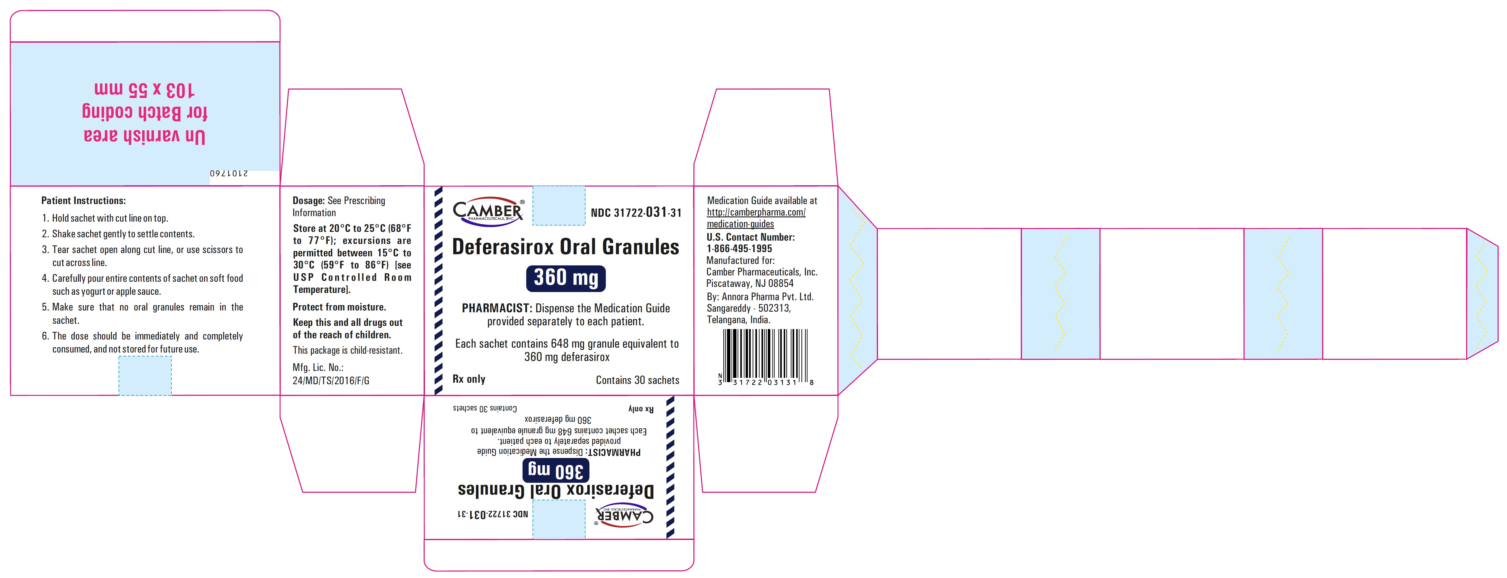 The following 8 images provide visual information about the product associated with Deferasirox NDC 31722-031 by Camber Pharmaceuticals, Inc., such as packaging, labeling, and the appearance of the drug itself. This resource could be helpful for medical professionals, pharmacists, and patients seeking to verify medication information and ensure they have the correct product.
