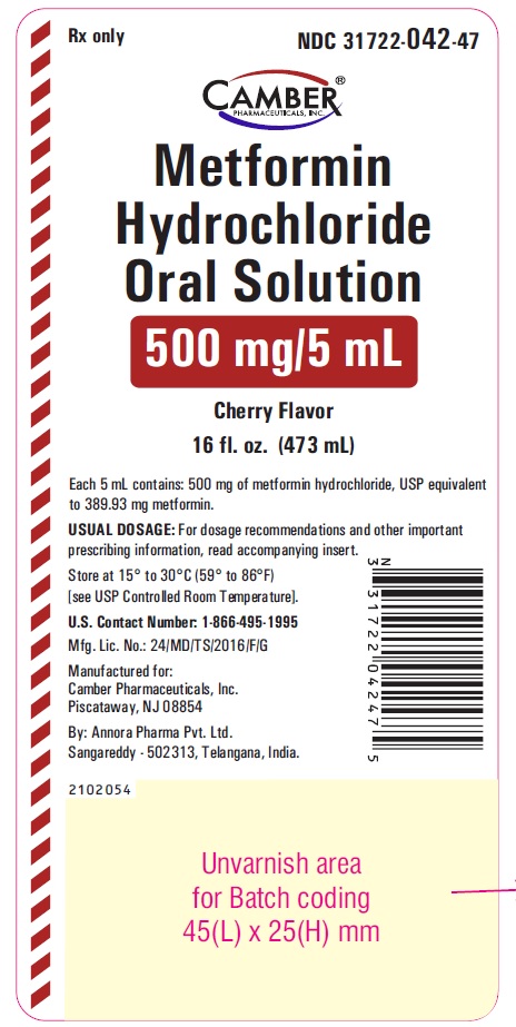 The following 4 images provide visual information about the product associated with Metformin Hydrochloride NDC 31722-042 by Camber Pharmaceuticals, Inc., such as packaging, labeling, and the appearance of the drug itself. This resource could be helpful for medical professionals, pharmacists, and patients seeking to verify medication information and ensure they have the correct product.
