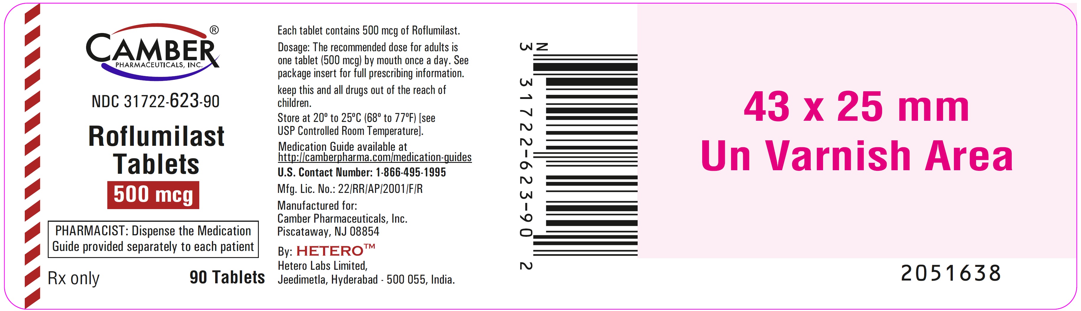 Roflumilast Tablets is a prescription drug containing 500mcg of Roflumilast as the active ingredient. It is recommended for adults to take one tablet by mouth once a day. The medication guide must be provided separately to each patient. The drug should be kept out of the reach of children and stored at a temperature of 20-25°C. Full prescribing information can be found in the package insert. The manufacturer is Camber Pharmaceuticals, Inc, and the drug is manufactured by Hetero Labs Limited in Hyderabad, India. Contact number of Camber Pharmaceuticals is also provided.*